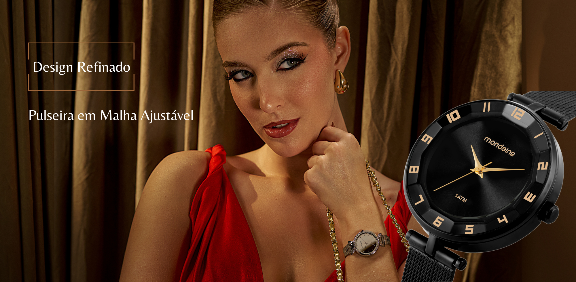 Kit Relógio Mondaine Feminino Dourado + Colar e Brincos